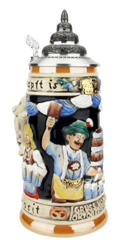 This German stein celebrates the 100th Anniversary of the Free State of Bavaria (100 Jahre Freistaat Bayern) with all things Bavarian. Bavaria officially proclaimed it’s independence in 1918. The festivities will culminate with a big celebration in Munich on Nov. 8th, 2018. Events celebrating this anniversary will be going on throughout the year focused on bringing everyone closer to the essence being a Bavarian; the unique customs, traditions, way of life and of course the natural beauty of the area.