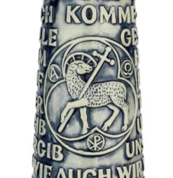Salt glazing is a unique process and involves throwing salt into the kiln during the firing process; thus variations, darkening, or spotting in the finish are normal and make each stein one of a kind!